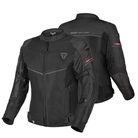 Model Stream Evo wyposażony jest w solidne protektory łokci i barków (Betac®) umieszczone w łatwo dostępnych kieszeniach oraz kieszeń na protektor pleców (do dokupienia osobno). Bezpieczeństwo zwiększają dodatkowo elementy odblaskowe z materiału ReflexLite®, które poprawiają widoczność motocyklisty w trudnych warunkach pogodowych.