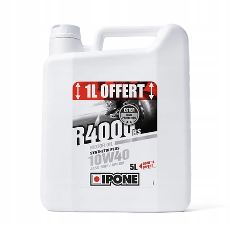 R4000 RS to półsyntetyczny, wysokowydajny olej silnikowy na bazie estrów do motocykli 4-suwowych do regularnego użytku. R4000 RS idealnie nadaje się do motocykli szosowych lub terenowych, z mokrym lub suchym sprzęgłem. Zapewnia wysoką odporność na ścinanie, optymalne smarowanie, ochronę dla silnika i skrzyni biegów. Pozostawia film olejowy na górnych częściach silnika długo po zatrzymanym silniku dzięki wysokiej zawartości estrów, które zapobiegają całkowitemu spływaniu oleju z powrotem do miski silnika. Zgodny ze standardami JASO MA2 API SM, oferuje najwyższy poziom ochrony sprzęgła podczas rozruchu, przyspieszania i przy maksymalnej prędkości.