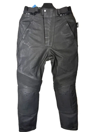 Wykonane z grubej skóry bydlęcej, która zapewnia wyjątkową odporność na ścieranie. Kolana zostały wzmocnione elastycznymi panelami oraz protektorami CE, spełniającymi normę EN 1621-1, co gwarantuje wysoki poziom ochrony. Dodatkowo, spodnie posiadają osłonę kości krzyżowej, co daje większe bezpieczeństwo w trakcie jazdy. W chłodniejsze dni wystarczy wpiąć wypinaną podpinkę ocieplającą, by cieszyć się komfortem przez całą podróż. Oddychająca podszewka Mesh zapewnia wygodę nawet przy dłuższym użytkowaniu.