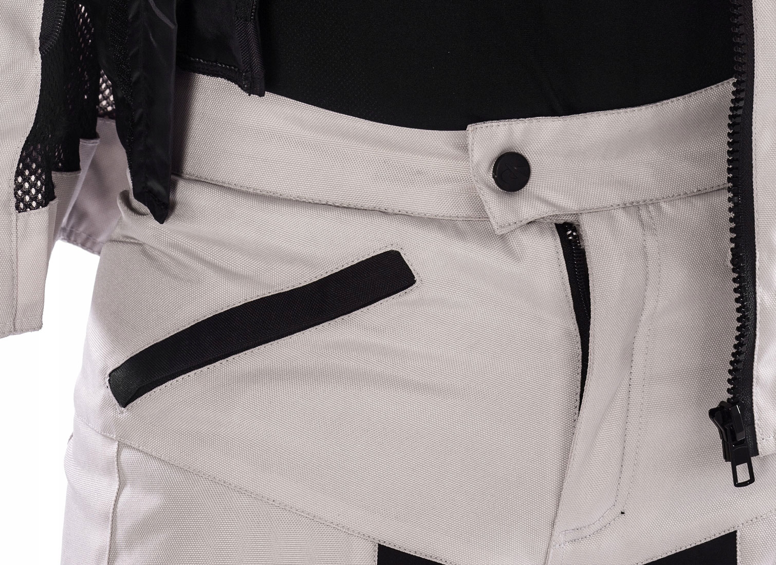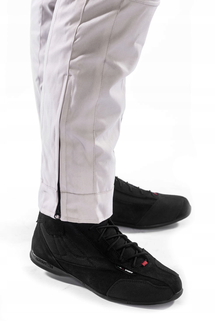 Pomimo wielowarstwowej budowy oraz użycia trwałych i solidnych materiałów spodnie nie krępują ruchów i dobrze układają się na ciele, za co odpowiadają elastyczne panele nad kolanami oraz anatomiczny krój nogawek. Za bezpieczeństwo motocyklisty odpowiadają certyfikowane protektory kolan oraz ochraniacze bioder, które dzięki łatwo dostępnym kieszeniom można bez problemu wyjąć lub wymienić. Równie mocne punkty spodni to wysoko rozpinane nogawki oraz dwuczęściowy zamek, umożliwiający połączenie ich z dowolną kurtką (po doszyciu do niej jednej z części zamka).