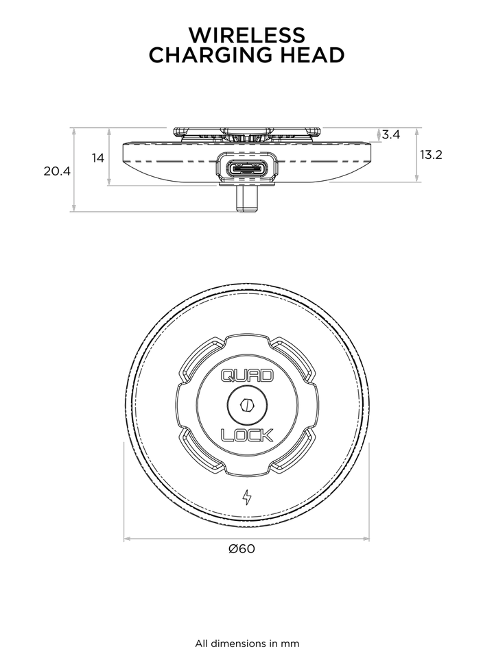 Nasza głowica z ładowarką indukcyjną Quad Lock MAG™ obsługuje szybkie ładowanie w połączeniu z odpowiednim zasilaniem.