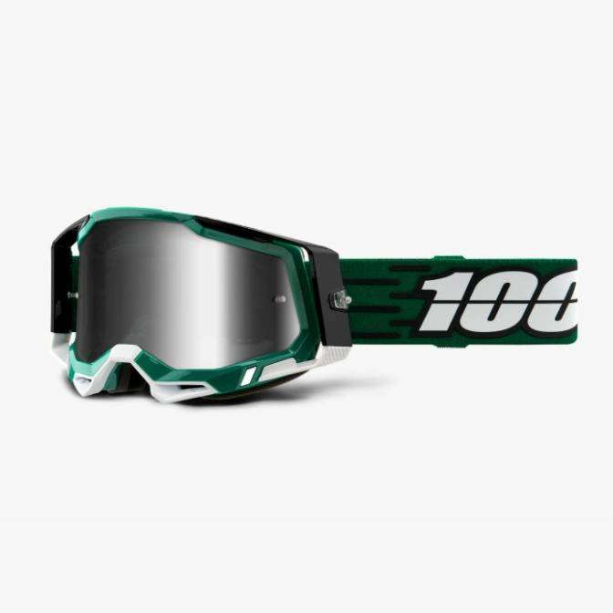 GOGLE 100 PROCENT CROSS/ENDURO RACECRAFT 2 MILORI CZARNY ZIELONY SZYBA SREBRNE LUSTRO