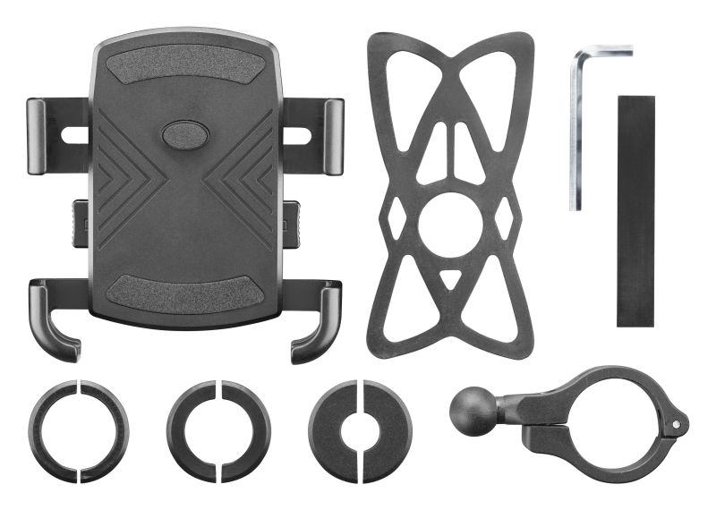 Zakres szerokości pasuje do najnowszych smartfonów, a uchwyt mocujący - dzięki odpowiednim adapterom - pasuje na kierownice o wymiarach od 12 do 30 mm. W zestawie jest również specjalna, elastyczna gumka "pajączek", którą zakłada się na rogi urządzenia i która dodatkowo chroni przed wypadnięciem urządzenia.
