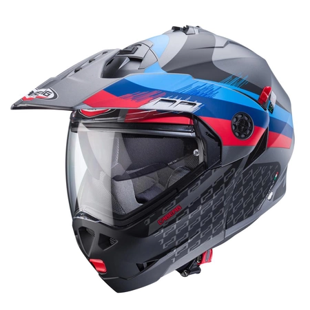 Kask szczękowy motocyklowy CABERG FLIP-UP ENDURO TOURMAX X SARABE Szaro-niebiesko-czerwony