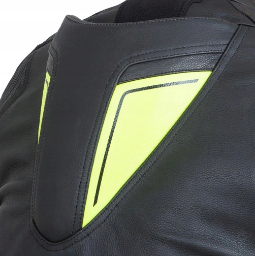 Warstwa zewnętrzna kurtki to połączenie wytrzymałej, grubej skóry bydlęcej oraz elastycznego poliestru typu stretch. Całość została zszyta specjalnie wzmocnionymi nićmi, co zapewnia zwiększoną odporność na uszkodzenia mechaniczne czy ścieranie podczas upadku.