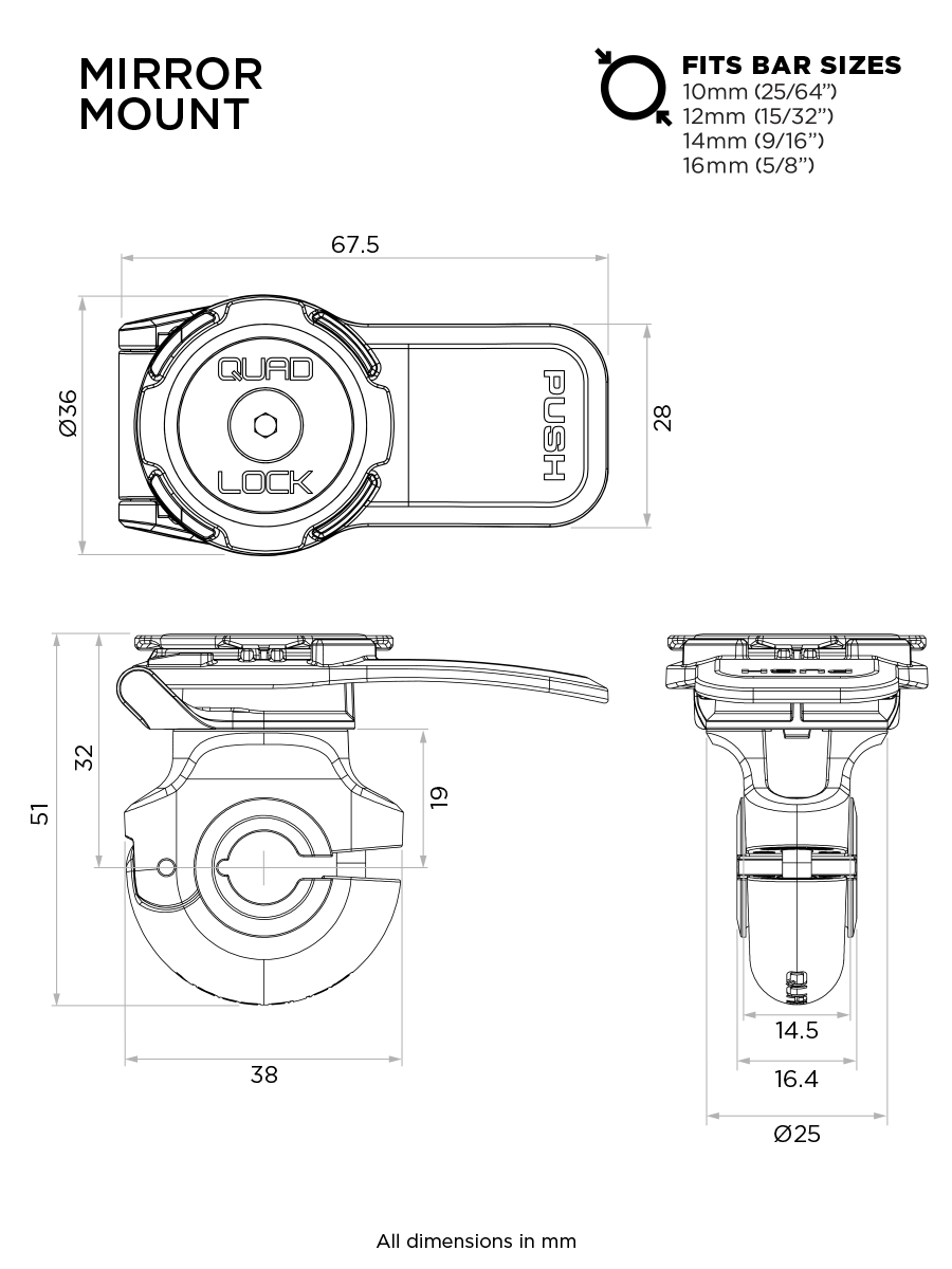 - 1 x Podstawa montowana na lusterku Quad Lock®