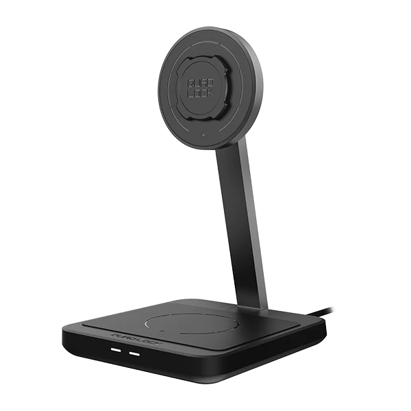 Biurkowa ładowarka indukcyjna Quad Lock MAG™ Dual zapewnia szybkie ładowanie wielu urządzeń jednocześnie.