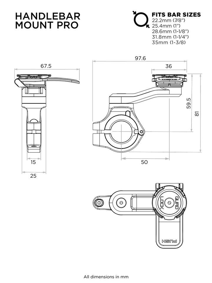- Pasuje do kierownic o rozmiarach 22 mm (⅞"), 25 mm (1"), 28 mm (1-⅛"), 32 mm (1-¼"), 35 mm (1-⅜") (średnica)