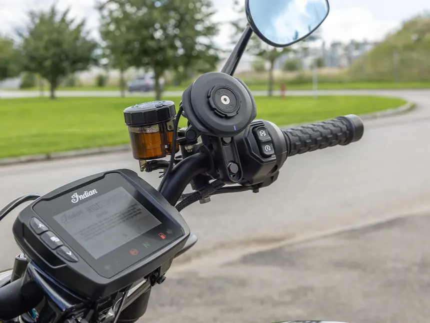 Opatentowana dwustopniowy mechanizm głowicy mocującej oznacza, że możesz jeździć ze spokojną głową, wiedząc, że Twój smartfon pozostanie bezpieczny na motocyklu bez konieczności stosowania uciążliwych smyczy, pasków, opasek lub magnesów, niezależnie od warunków terenu.