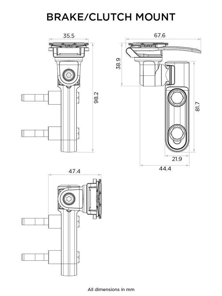 - 1 x Podstawa montowana w obejmie pompy hamulca/sprzęgła Quad Lock®