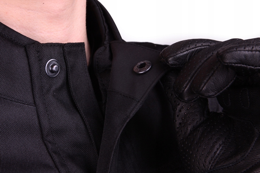 Kurtka posiada cztery zamykane na ekspresy kieszenie zewnętrzne i jedną, zamykaną na rzep, kieszeń wewnętrzną, które zapewniają wystarczającą ilość miejsca na podstawowe drobiazgi. Średniej wysokości (tzw. stójka) miękko wykończony kołnierz z zapięciem na mocną napę dobrze osłania szyję podczas jazdy i chroni przed rozpięciem kurtki podczas jazdy.